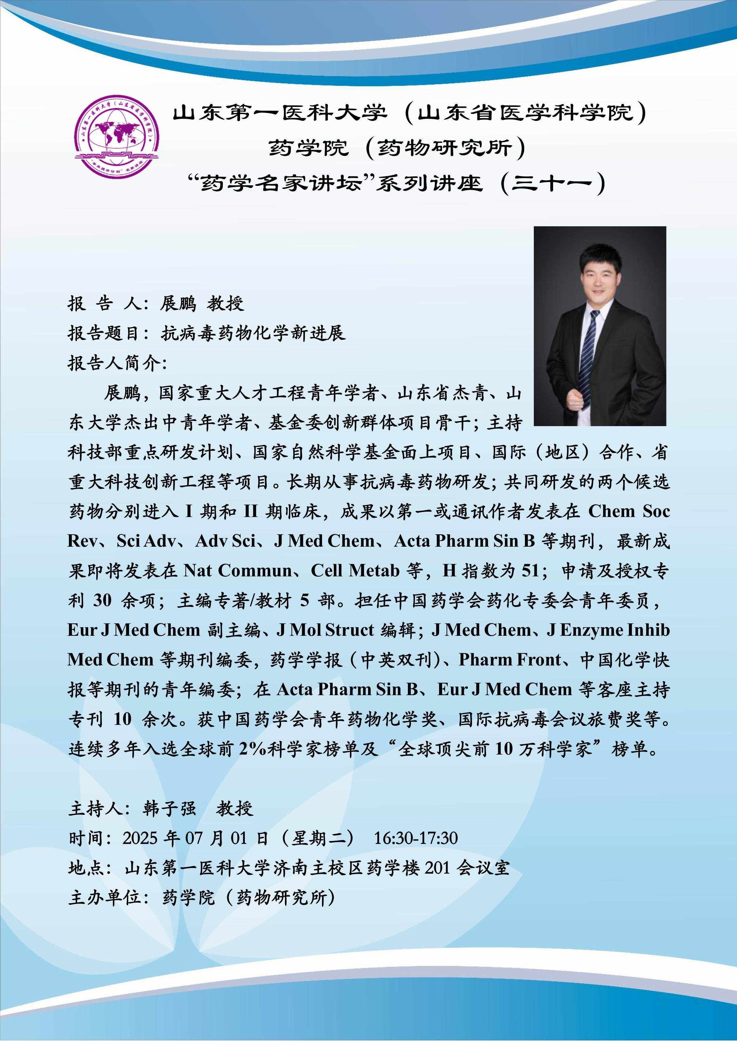 下一篇:山东第一医科大学(山东省医学科学院) 药学院(药物研究所) “药学名家讲坛”系列讲座(三十)