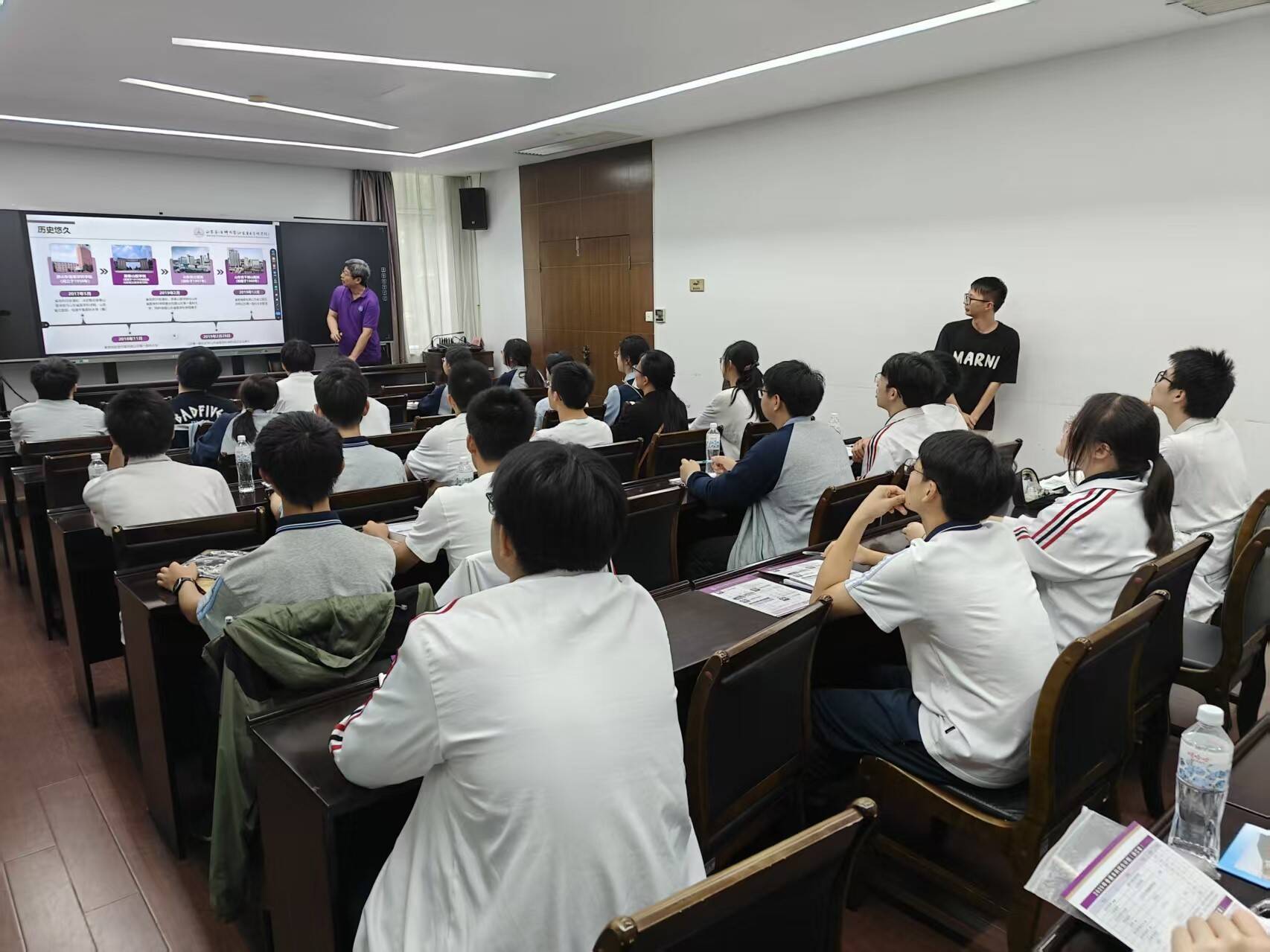 活动中,校(院)针对浙大附中高中学子进行了招生宣讲和交流互动。校(院)宣讲老师播放了2025招生宣传片并详细介绍了山一大的历史沿革、师资力量、科研成果、学生发展、校园文化生活等,重点阐述了山东第一医科大学吸引广大学子的科教融合、创新培养、学科发展等十大优势,对2025年的浙江招生计划及相关招生政策进行了解读。在互动环节,同学们积极提问,就自己关心的学科发展、专业选择、就业前景、校园生活等问题与老师们进行了热烈交流。