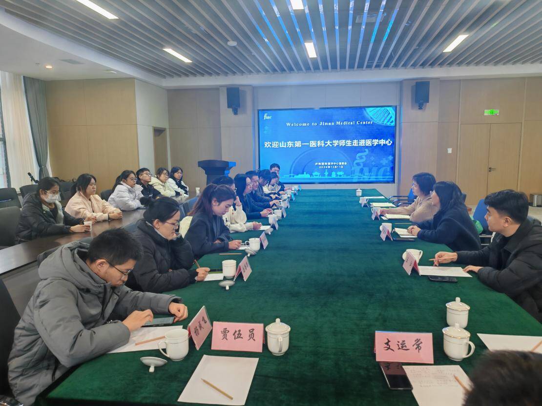 为了解毕业生市场需求,拓展就业岗位,12月11日,药学院(药物研究所)副院长周延萌带领学院师生代表20余人,到济南国际医学中心走访,济南国际医学中心管委会经济发展局副局长郑晓娟、主办尹晓平全程陪同。