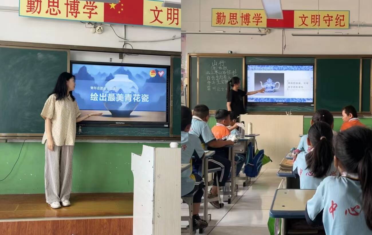 12日下午,为了扩展孩子们的视野,培养他们的审美情趣,以及强化他们对民族文化的自豪感,服务队带领孩子们观看“最美青花瓷”的相关课件与视频,让他们深入了解我国青花瓷的悠久历史与精湛工艺。随后,志愿者们鼓励小朋友亲手绘制青花瓷,小朋友们运用在课堂上学到的知识,并结合他们丰富的想象力,在画纸上创作出一个个独特的艺术作品。这项活动不仅加深了孩子们对青花瓷的理解,更让他们深切体会到中华文物所蕴含的典雅与高贵之美。