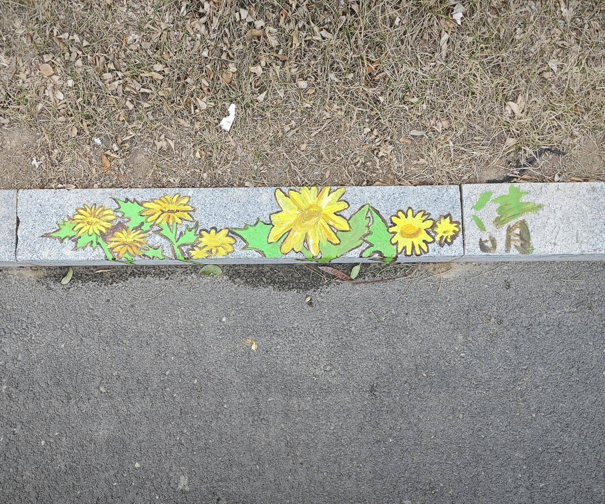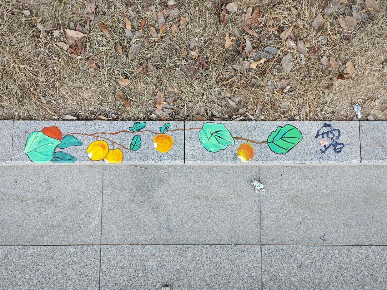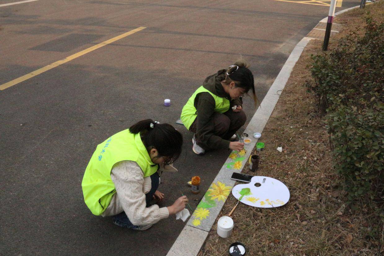 活动现场,二十余名志愿者摇身一变,成为了“校园画师”。他们手持画笔,以环保丙烯颜料为灵动的媒介,在路沿石上精心勾勒。薄荷在小满时节舒展身姿,玉竹于处暑时分散发淡雅,每一幅图案都精准对应着节气的物候,巧妙融入《本草纲目》中记载的药用植物元素,仿佛将古老的本草智慧从泛黄的书页中唤醒,赋予它们鲜活的生命力。除了精美的本草图案,志愿者们还精心绘制了相关创意字,大寒、处暑、惊蛰、小满……这些文字与图案相互映衬,让平凡的路沿石瞬间化身为一件件珍贵的艺术品,为校园文化注入了源源不断的新活力。