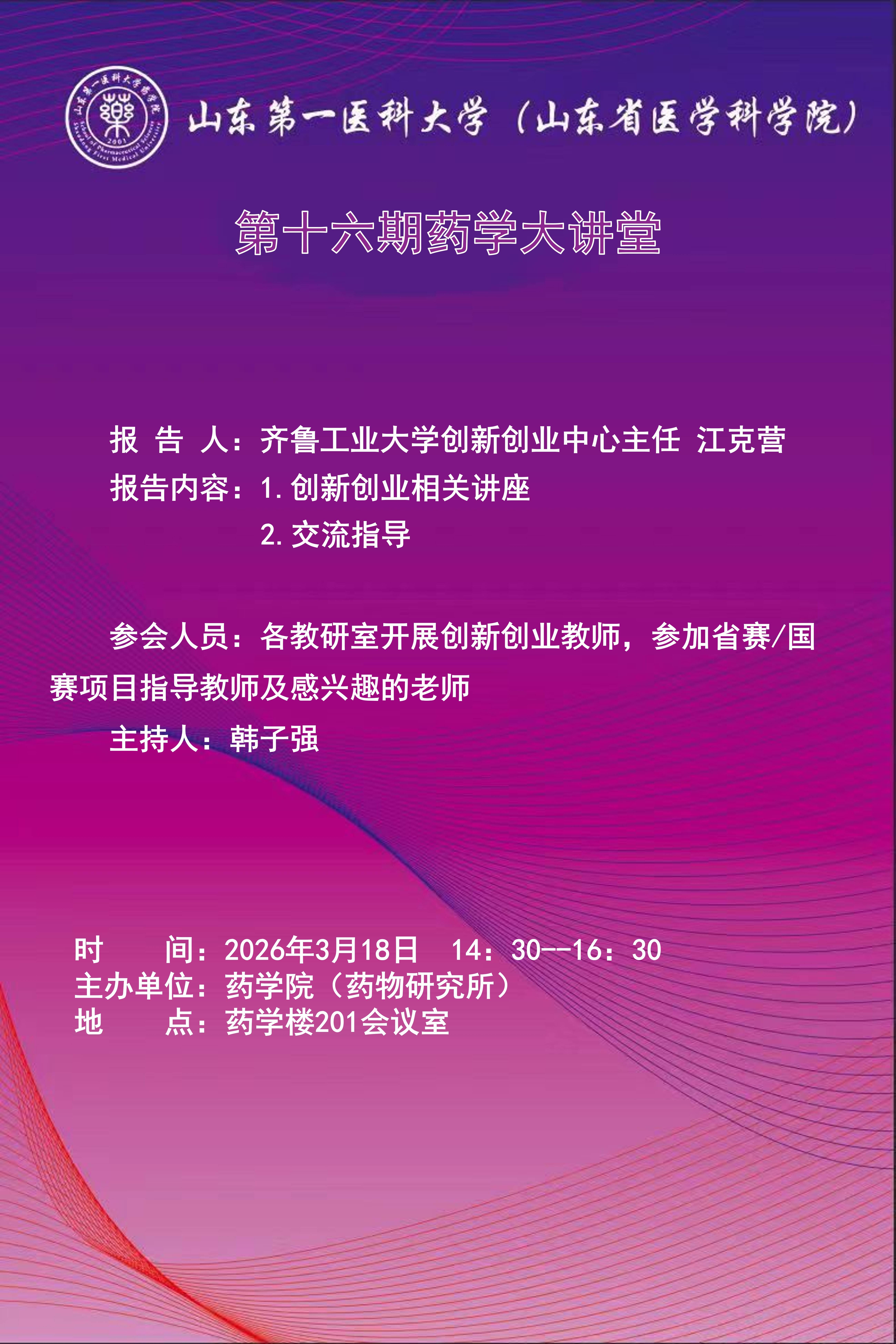 下一篇:药学大讲堂第十五期——携创前行 中国国际大学生创新大赛详解