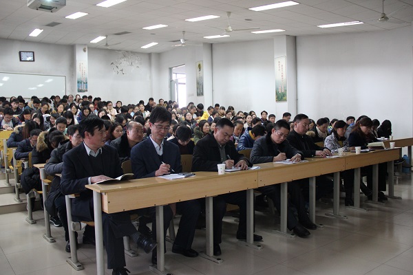 任教授以“全面从严治党,开启新的征程”为题目,从全会概况、现实背景、关键词、深刻影响等四个方面,对六中全会精神进行了解读。报告从国内形势、国际形势两个方面深入分析了从严治党过程中面临的问题,明确指出,依靠制度反腐是我们党长期保持先进性和纯洁性的关键,全面从严治党,必须从根本上解决主体责任缺失、监督责任缺位、管党治党宽松软的问题。报告重点解读了全面从严治党、领导核心、严肃党内政治生活、完善党内监督和迎接十九大等五个关键词,明确指出,加强和规范党内政治生活是开辟全面从严治党新篇章的主攻方向,坚持党中央的集中统一领导,对确立中央权威、增强党和国家的凝聚力和战斗力,具有极为重要的意义。任教授在宣讲报告最后指出,党的十八届六中全会吹响了全面从严治党的“新号角”,走出了一条又严又实的治党“新路径”,对实现“两个一百年”的奋斗目标、落实“四个全面”战略布局具有重大的现实意义,也将成为党和国家历史上具有里程碑意义的一次会议。