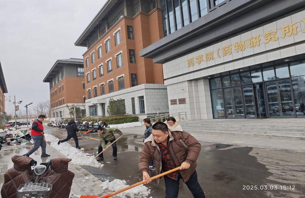 受近日强冷空气影响,山东第一医科大学校园厚厚的积雪给师生的出行带来了诸多不便。为保障校园道路畅通和师生安全,药学院(药物研究所)组织了“除雪清障,路路畅通”志愿者服务活动,党委副书记罗树启带领各教研室老师参加铲雪工作。