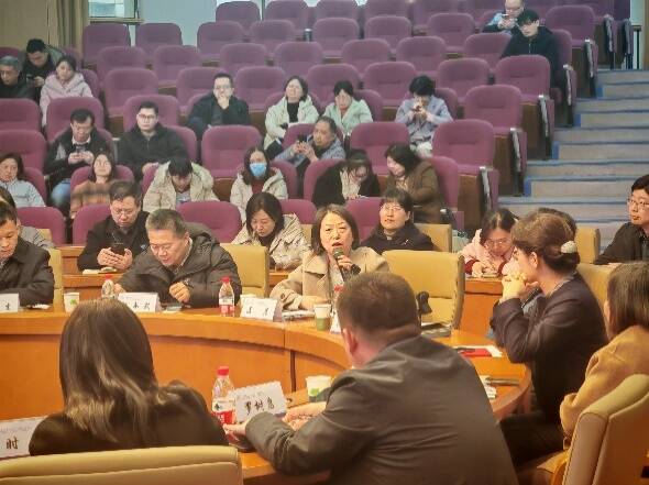 附属中心医院副院长温清、附属省立医院药学部主任沈承武、第一附属医院药学部主任黄欣、附属肿瘤医院药学部主任陈海生、附属中心医院药学部副部长王潞围绕学院医院共建提出了宝贵建议。在实验设备共享方面,建议建立中心实验室,实现设备开放共享,并制定合理的收费标准,对附属医院给予优惠。同时,完善设备管理制度,包括设备和人员的统一管理、仪器设备清单的梳理、申请预约流程的明确以及绩效管理机制的建立等。人员协助方面,提议药学院(所)与各附属医院药学部建立科研互助小组,发挥各自优势,开展科研合作,共同完成项目并共享成果,同时联合申报科研项目,深化合作。教学协助上,借助临床药学院平台开展教学协作,优化教学内容,使教学更贴近实际工作,培养适应实际工作的毕业生,并探索药学硕士教育与临床药师规范化培训并轨的模式。学术交流方面,定期举办学术交流会议,分享学科发展、专业动态、国家政策等信息,增进彼此了解。支部共建上,发挥党建引领作用,开展多种形式的共建活动,促进药学院(所)与各附属医院药学部党支部之间的资源共享、优势互补、互相促进、共同提高。