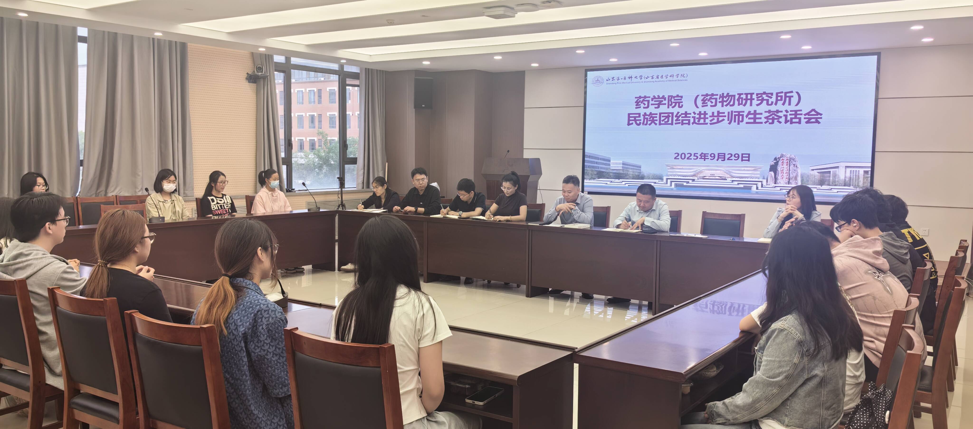 9月29日,在国庆节中秋节来临之际,药学院(药物研究所)各民族师生代表欢聚一堂,共同回顾中华民族共同体发展的光辉历程与民族团结进步的伟大成就,集体学习习近平总书记关于铸牢中华民族共同体意识的重要论述,来自内蒙古、新疆、贵州、江西等地的蒙古族、哈萨克族、朝鲜族、回族、白族等同学积极分享本民族特色文化,结合在校生活、学习等情况畅所欲言,就食堂民族餐窗口等问题提出中肯意见建议。党委书记孔志峰勉励全体师生要像石榴籽一样紧紧抱在一起,坚定理想信念,将个人理想融入国家发展大局,把爱国情、强国志转化成自觉行动,为实现“中华民族一家亲,同心共筑中国梦”提供有力支撑、贡献更大力量。
