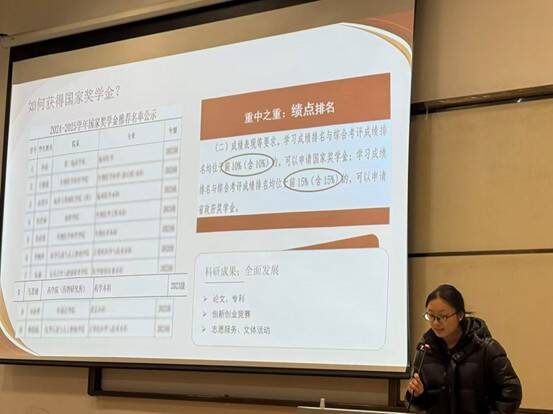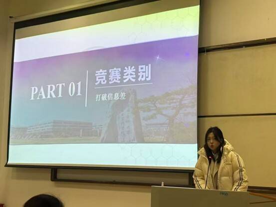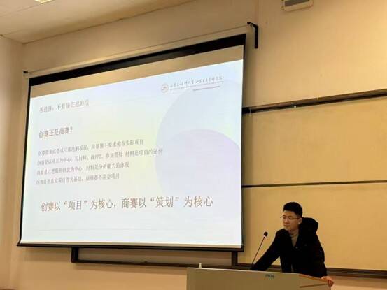 随后,侯晨旭同学聚焦创新创业类赛事,全面介绍了多种参赛途径,为同学们整合了丰富的资源信息。结合个人备赛经历,她分享了实用的赛事策略,着重强调了良好心态在比赛中的重要性。此外,她还提供了诸多参赛 “小技巧”:鼓励同学们打破信息壁垒,充分利用各类平台获取赛事资讯;注重细节记录,深入研读比赛规则,为参赛做好万全准备。