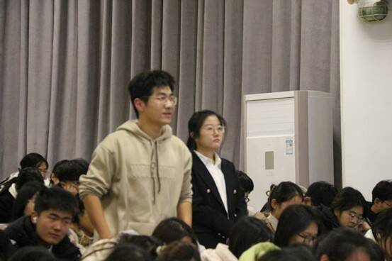 紧接着,孙浩淼同学围绕 “寻目标、善选择、着手干、多总结” 四大核心维度展开分享。他强调,创新创业路上要具备接受失败、从头再来的勇气。在选择层面,他建议同学们精准定位赛道,谨慎认真选择研究课题,避免在起点错失先机。针对实践环节,他着重讲解了 PPT 制作技巧与项目故事呈现方法,提醒大家注重细节表达。最后,他呼吁同学们养成总结反思的习惯,在复盘与修正中持续进步。互动环节,同学们踊跃提问,多元观点碰撞出思维火花,让创新创业的新思路不断涌现,将现场氛围推向高潮。