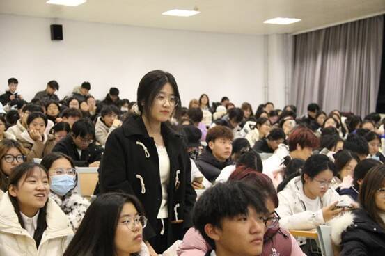 首先登台分享的是马思敏同学,她以自身卓越成就为切入点,为同学们树立了清晰的学习榜样。她简明扼要地介绍了论文的写作经验,帮助同学们建立起系统的认知框架。从选题立意到撰写修改,为同学们提供了详细且实用的建议。在互动问答环节,马思敏耐心解答同学们的疑问,鼓励大家积极参与创新创业活动,通过实践积累经验,为未来职业发展筑牢根基。
