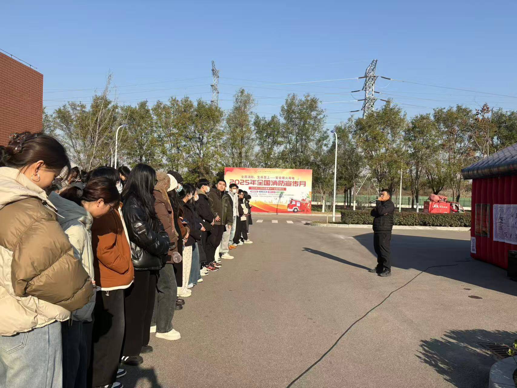 2025年11月21日,药学院(药物研究所)组织部分同学参加安全保卫部组织的2025年全国消防宣传安全月专题活动。 此次专题活动的主题是“全民消防,生命至上——安全用火用电”,邀请安全保卫部负责人员讲解了日常用火用电的安全常识,演示了灭火器的方法,组织全体参与人员进行了现场模拟演练。 消防宣传月专题活动向同学们传达了“消防安全、人人有责、预防火灾、平安你我”安全理念,引导同学们在日常生活中时刻牢记消防安全,掌握灭火基本技巧。
