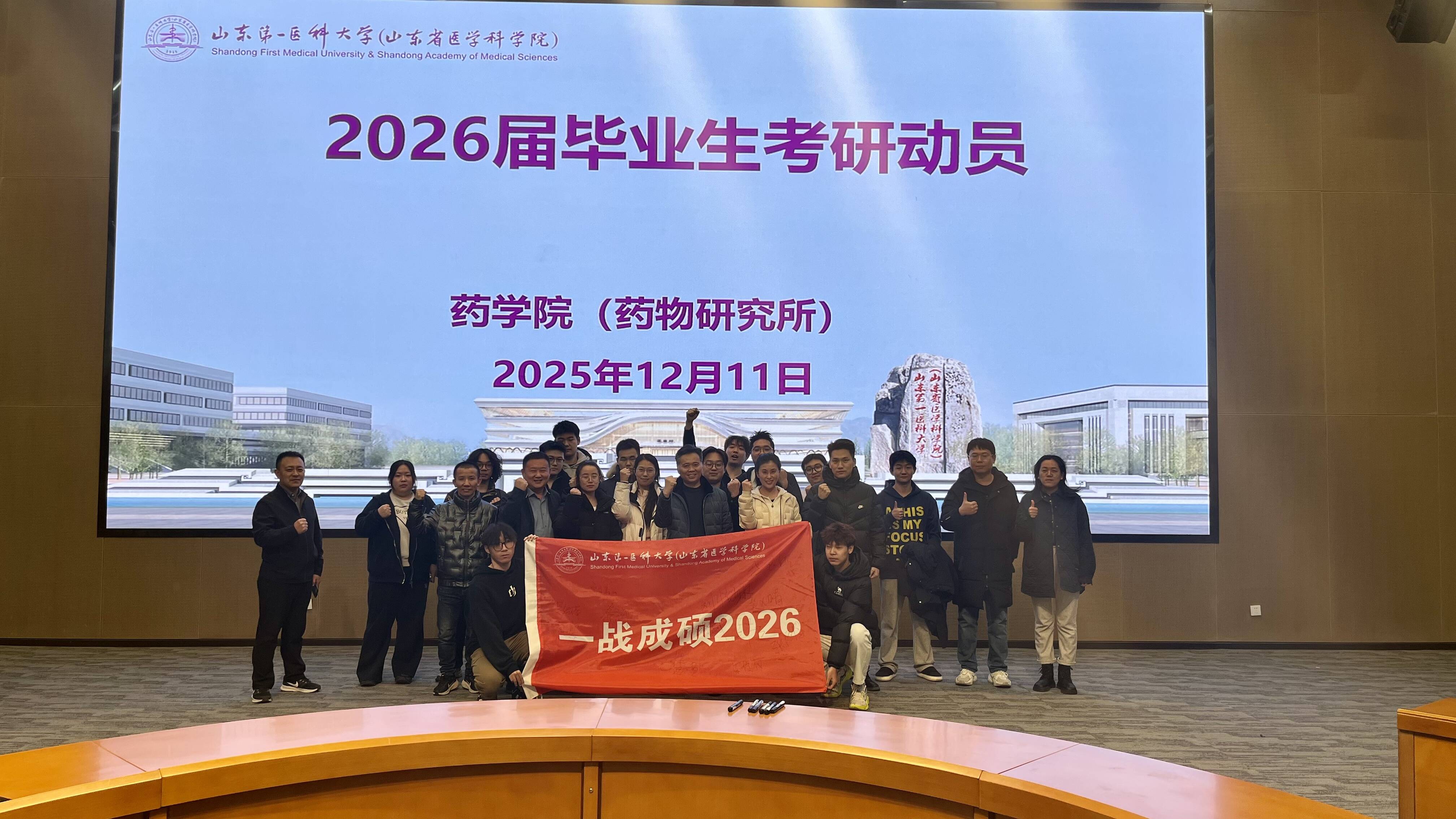 为切实做好2026年硕士研究生考试的备考支持与心理疏导工作,进一步激发考研学生迎考信心、凝聚奋进力量,12月11日,药学院(药物研究所)组织开展考研动员“暖心助航”活动。院(所)党委书记孔志峰做考前动员,辅导员代表、考研学生代表、学生骨干参加此次活动,副书记罗树启主持会议。