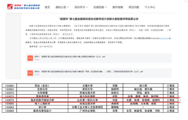 近日,第七届全国高校混合式教学设计创新大赛决赛结果揭晓。山东第一医科大学药学院(药物研究所)刘燕教师团队荣获三等奖。