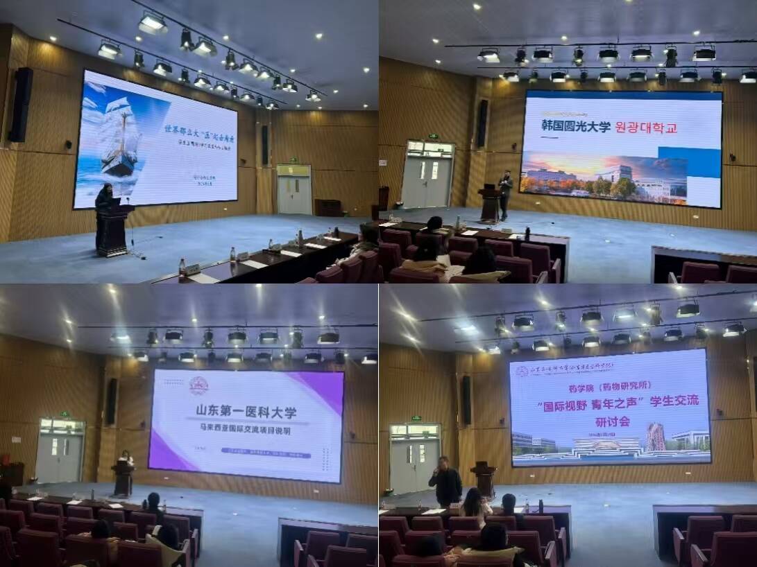 研讨会伊始,校(院)国际交流与合作部倪玲老师发表讲话,强调了国际交流对药学专业人才培养的重要意义,鼓励同学们主动把握海外学习机会,在跨文化交流中提升专业素养与综合能力。随后,韩国圆光大学中国代表处陆涛老师详细介绍了圆光大学的药学学科建设、留学项目申请要求及校园生活支持;马来西亚留学项目的马丽红老师则分享了马来西亚高校的药学研究特色、合作项目亮点及留学生活实用建议。两位老师的分享让同学们对海外深造路径有了更清晰的认识。最后,药学院(药物研究所)党委书记孔志峰总结发言,他指出,青年学生作为药学事业的未来力量,应主动拥抱国际化浪潮,在多元文化碰撞中成长为兼具专业实力与全球视野的创新型人才,并鼓励同学们积极参与国际交流项目,为推动药学事业的全球合作贡献青春力量。