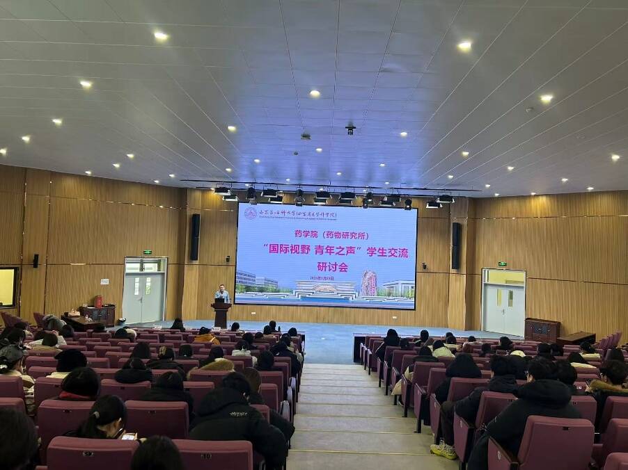 为拓宽学生国际视野,搭建跨文化交流平台,2026年1月19日下午,药学院(药物研究所)在基础楼B报告厅成功举办“国际视野·青年之声”学生交流研讨会,全院370余名本科学生参与本次活动。本次研讨会由副院(所)长韩子强主持。