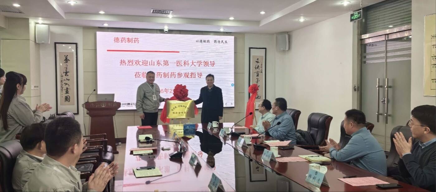 为扎实推进“寒假促就业暖心行动”专项行动,深化产教融合与科研合作,2026年2月3日,药学院(药物研究所)党委书记孔志峰带队,组织科研骨干教师及学生代表赴德州德药制药有限公司和山东大学齐鲁医院德州医院中心院区开展交流座谈与实地调研,副院长韩子强、党委副书记罗树启参加活动。