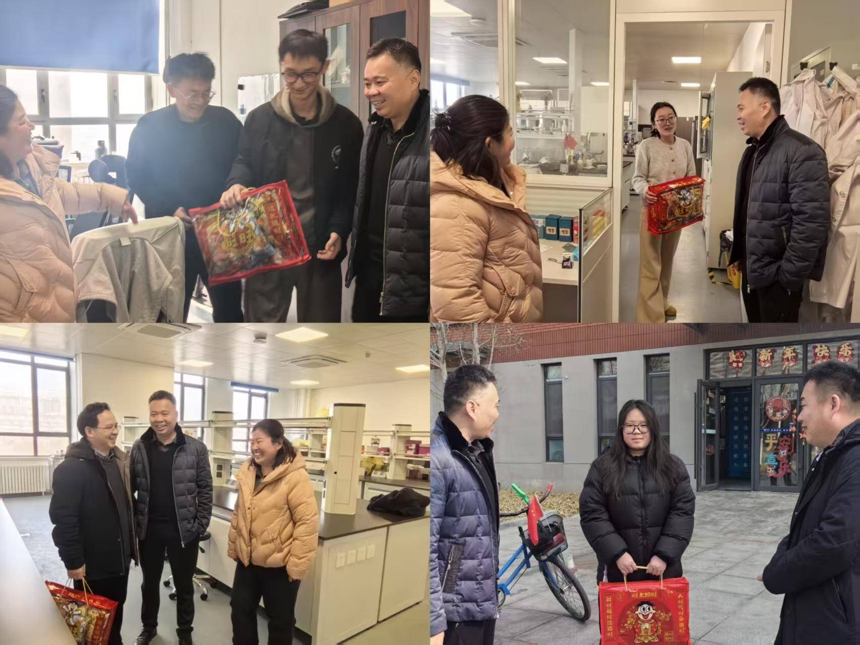院(所)领导班子成员先后走访了留校学生宿舍楼及多个科研实验室,与寒假期间留校坚持进行科研实验、基金项目申报、学习的师生员工进行亲切交谈,询问他们的在校内的生活安排和实际困难,并送上新春慰问品,并叮嘱师生员工们在专注科研、学习的同时,务必注意劳逸结合,增强安全意识,尤其强调了实验室仪器设备运行安全和宿舍用电及消防安全。