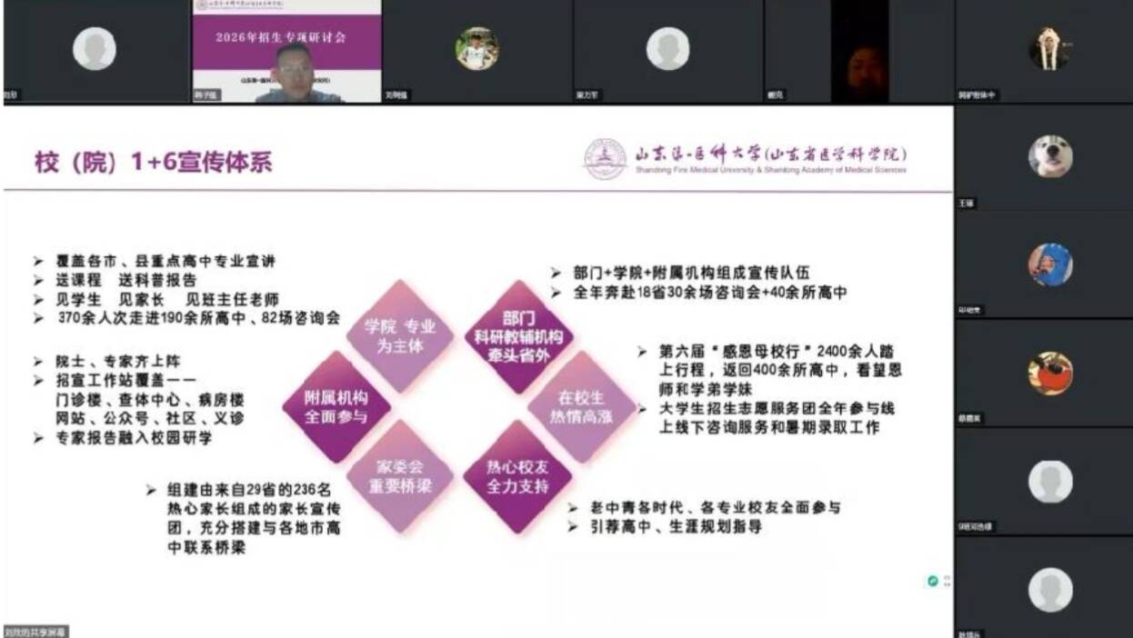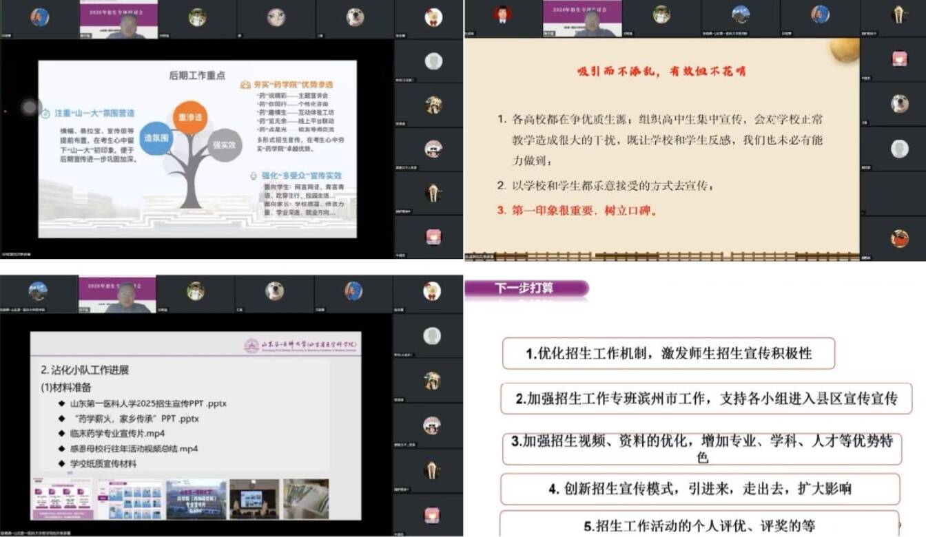 针对上述问题,学院副院长韩子强提出改进意见:丰富宣传载体,优化招生视频、引入游学项目、邀请学子走进实验室、开发特色文创礼品;强化队伍建设,升级宣传培训体系、建立线上志愿者库,针对理科生解读药学专业优势,突出推免政策、“医药两翼” 发展战略及国家重点实验室等核心亮点;健全长效机制,鼓励宣传员分享校园亲身经历,以朴实语言增强感染力,搭建与高中、考生的沟通渠道,做好高考关键节点咨询服务。