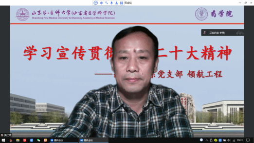 为进一步推动“领航工程”走深走实,切实做好学生们的领航员,助力班级进步、携手学子成长,11月27日晚,药物制剂系党支部与2022级药学本科专业1-2班学生共同开展了以“学习宣传党的二十大精神”为主题的“领航工程”云端交流会。交流会由党支部书记李珂主持。学院党委书记史仁玖作为普通党员参加会议并为学生宣传解读了党的二十大精神。