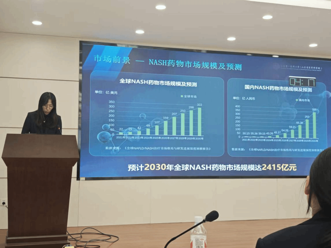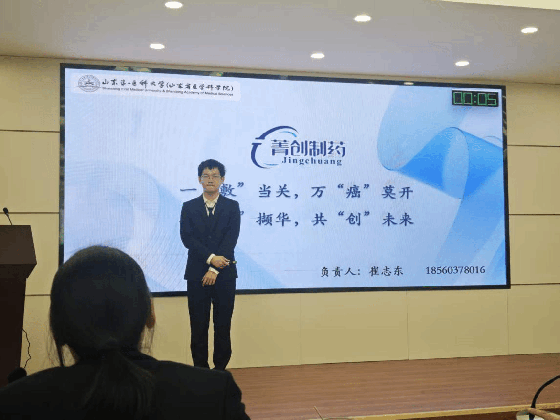 4月18日,大赛决赛开始。本次决赛共吸引15支团队参赛,项目覆盖新药研发、药学服务、医疗器械、健康管理等多个方向。路演现场,各团队以PPT展示的形式,从项目背景、技术优势、市场前景、社会价值等维度,全面介绍项目内容。有的团队聚焦临床用药难题,开发新型制剂技术,提升药物疗效与安全性;有的团队关注基层药学服务短板,设计智慧药学服务方案,打通健康服务“最后一公里”。
