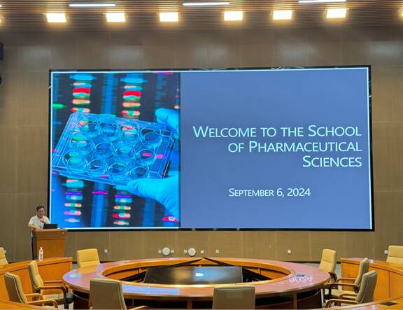 解维林教授首先对新生们的到来表示了热烈的欢迎和衷心的祝贺。解教授结合自身的科研经历,详细给学生们介绍了COX-2抑制剂塞来昔布的诞生及其在治疗疾病中的疗效,并从靶向蛋白质降解新药研发、抗癌、Fibrosis和NASH新药研发等方面给了新生们一些做科研的启发与建议。他教育新生要尽快转变身份、融入角色,以饱满的热情投入到新阶段的学习生活当中;要牢记“团结 进取 求实 创新”,强调了自主学习与团队合作的价值;鼓励学生们坚定初心,积极投身于知识的探索与实践。