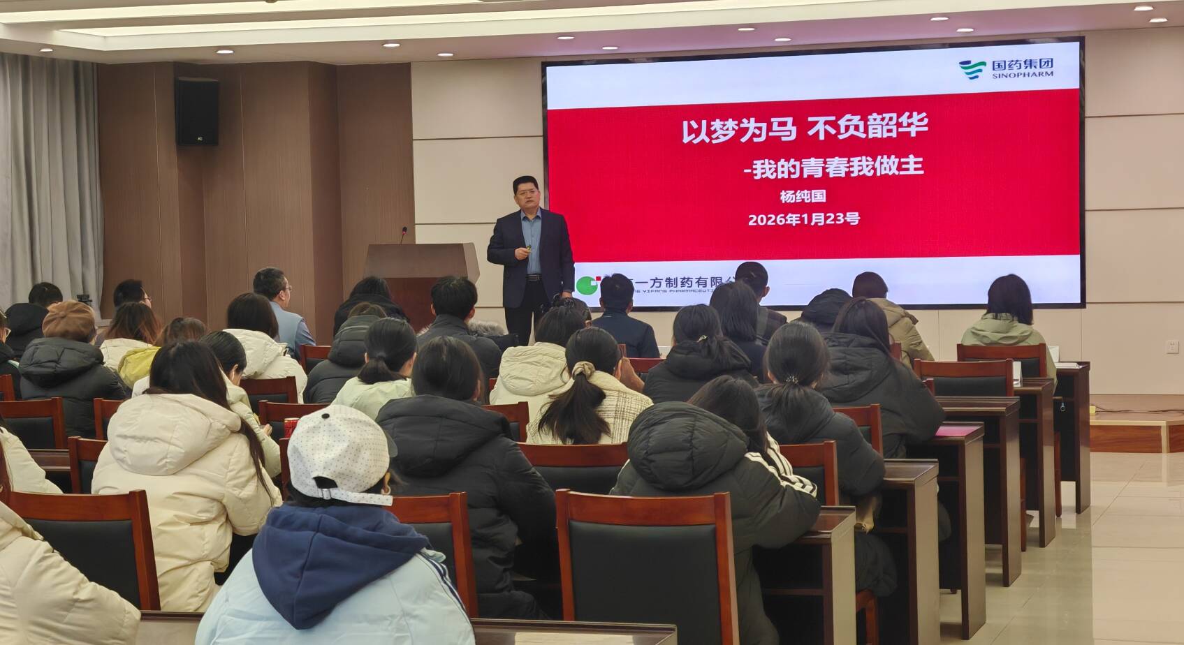 研讨会首部分为两场高质量学术讲座。山东一方制药副总经理杨纯国以“以梦为马 不负韶华—我的青春我做主”为题,结合自身经历,系统阐释了职业生涯规划的重要性。他从自我认知、环境分析到目标设定,激励学生科学规划人生,以奋斗点亮青春。随后,杨总切换视角,带来“中药行业发展趋势和展望”专题讲座。他深入剖析了中药饮片的行业现状、面临挑战与发展机遇,并以阿胶为例进行生动解读,为师生提供了宝贵的行业洞察。