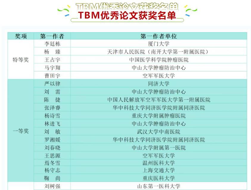 作为肿瘤学界备受瞩目的年度盛会,大会为激发青年医生、科技工作者及研究生的学术创新活力,大会特别设立TBM(Tumor Biomarker)优秀论文评选。共收到有效投稿1294篇,TBM优秀论文评选的论文达400余篇,其中众多来自《New England Journal of Medicine》《Cancer Cell》《Lancet Oncology》《Cell》《Nature Genetics》《Signal Transduction and Targeted Therapy》等国际顶级期刊发表高水平论文。